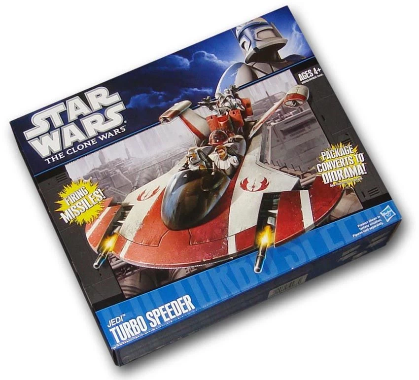 Der Clone Wars Jedi Turbo Speeder kann im Cockpit und am Artilleriegeschütz jeweils zwei Figuren aufnehmen (Figuren nicht enthalten).