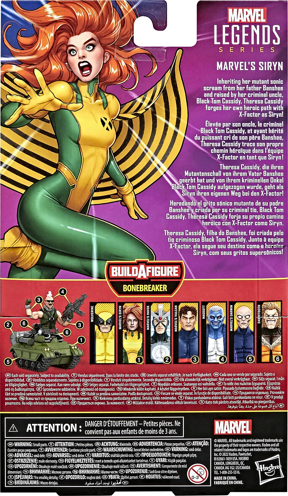 Theresa Cassidy, die ihren Mutantenschall von ihrem Vater Banshee geerbt hat und von ihrem kriminellen Onkel Black Tom Cassidy aufgezogen wurde, geht als Siryn ihren eigenen Weg bei den X-Men! Mit einer über 80-jährigen Entertainment-Geschichte ist Marvel ein zentraler Bestandteil der Fankollektionen weltweit. Die Marvel Legends Series zeigt die Lieblingscharaktere aus dem Marvel Comic Universe und dem Marvel Cinematic Universe mit Premium-Design und Bewegungspunkten, um sie zu präsentieren. Von Figuren und Fahrzeugen bis hin zu Premium-Rollenspielartikeln, bietet die Marvel Legends Series Fans und Sammler*innen erstklassige Produkte. Zusätzliche Figuren sind jeweils separat erhältlich, je nach Verfügbarkeit.