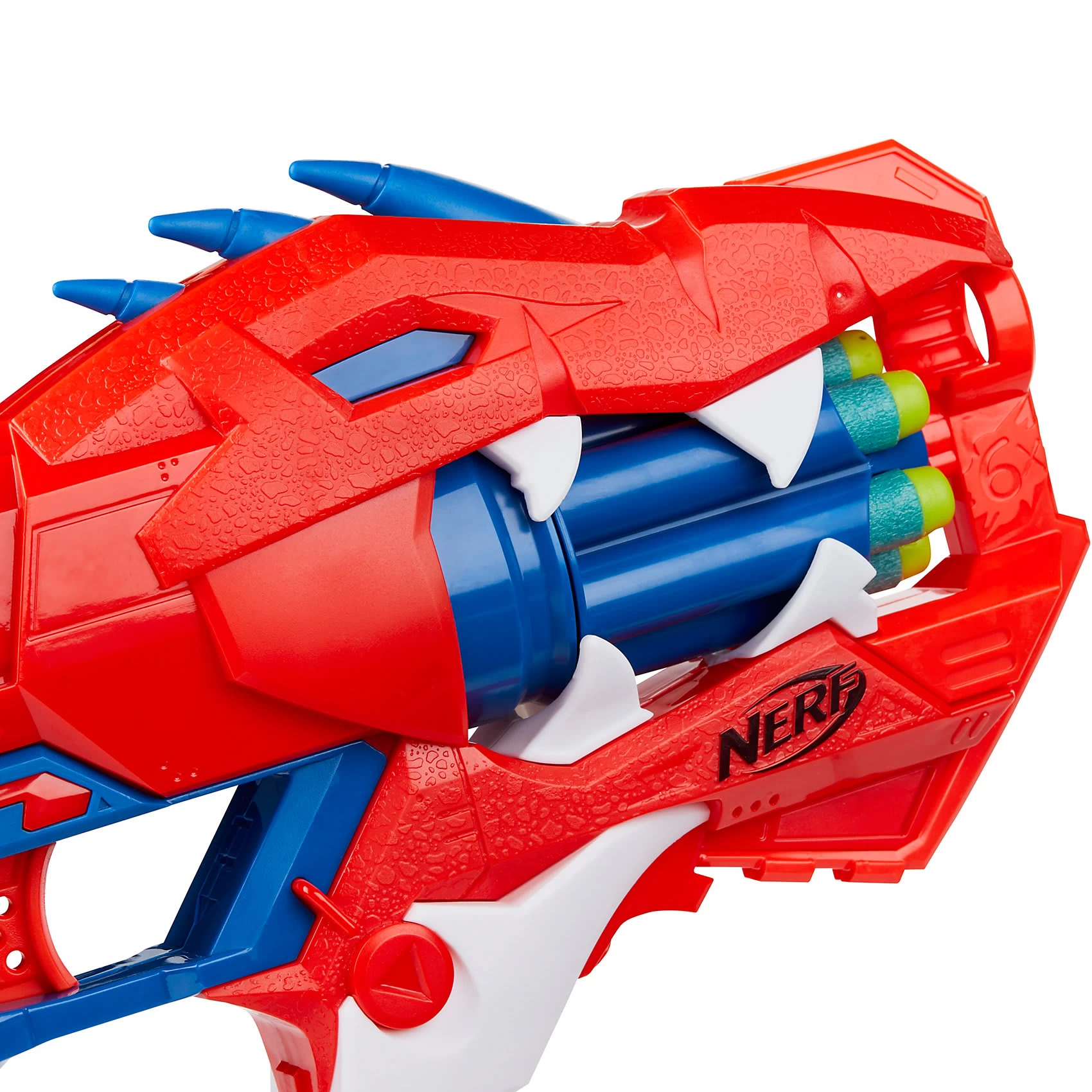 Neue Nerf-Action für alle Dino-Fans! Der DinoSquad Raptor-Slash Dart-Blaster von Hasbro kommt mit saurierstarken Details und überzeugt im coolen Velociraptor-Look. Der Blaster hat eine 6-Dart Rotationstrommel und einen Schnellfeuer-Modus, der es erlaubt die 6 beiliegenden Darts nacheinander abzufeuern. Die Darts schießen dann entweder nacheinander einzeln oder im Schnellfeuer-Modus aus dem Dino-Maul. Die Trommel wird geladen, der Spannschlitten bewegt und der Abzug gedrückt, um einen Dart abzufeuern. Die Schnellfeuer-Action sorgt für einen schnellen Dart-Hagel. Um alle 6 Darts schnell abzufeuern, wird der Abzug gedrückt gehalten und der Spannschlitten vor- und zurückbewegt. Die Nerf Elite Darts sind aus Schaumstoff gefertigt und für Indoor- und Outdoor-Action geeignet.