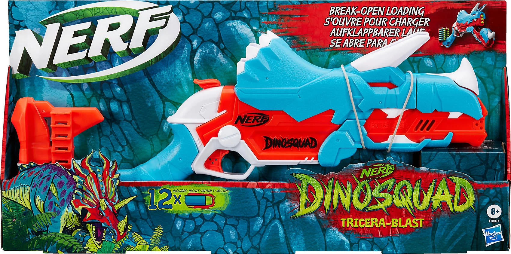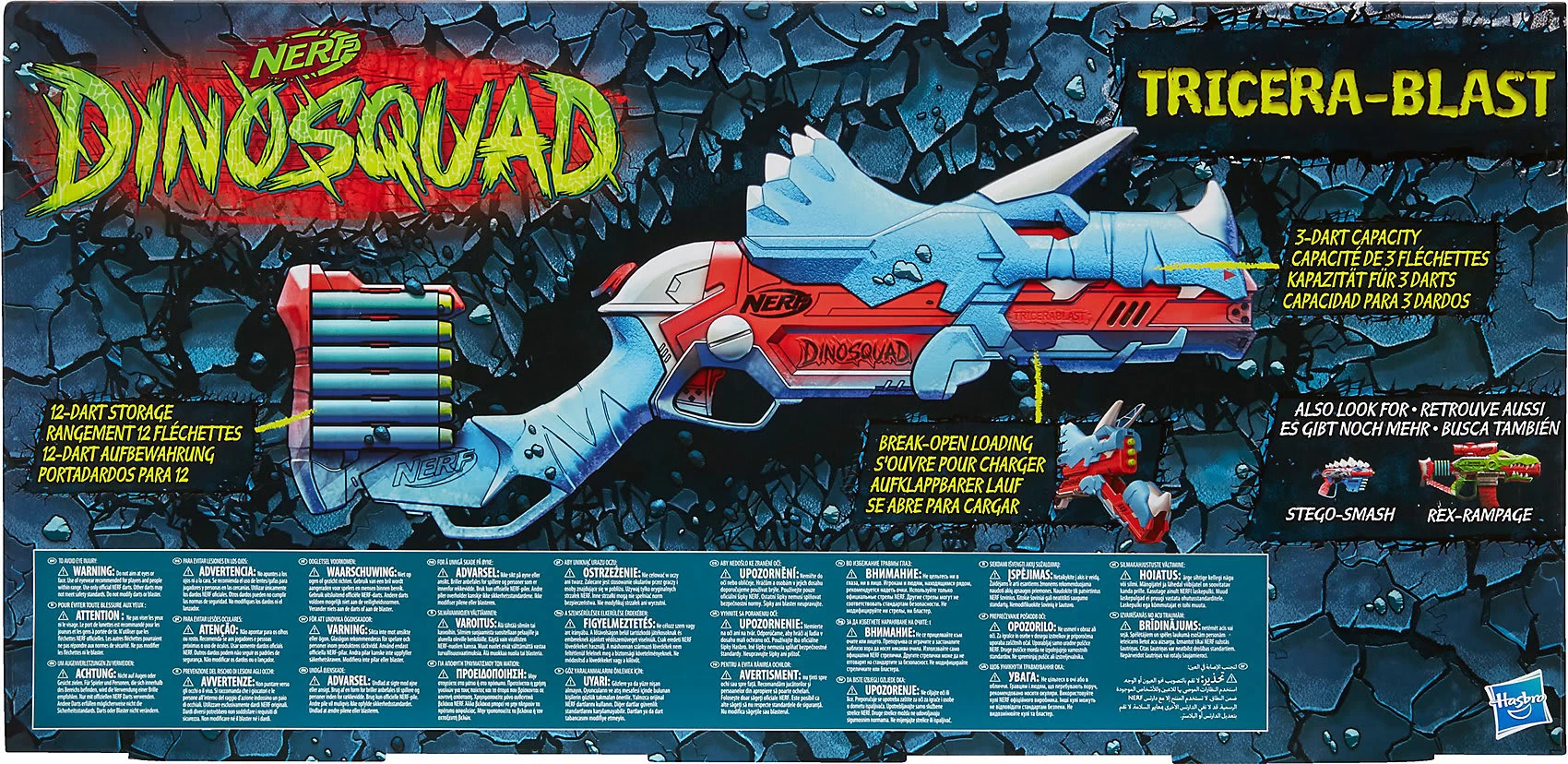 Der Hasbro NERF TRICERABLAST zeigt sich im coolen Dinosaurierlook und lässt sich leicht bedienen. Drei Darts können gleichzeitig geladen und abgefeuert werden. Der Blaster verfügt zudem über eine integrierte Dart-Aufbewahrung für zwölf Darts – so kann immer schnell nachgeladen werden.